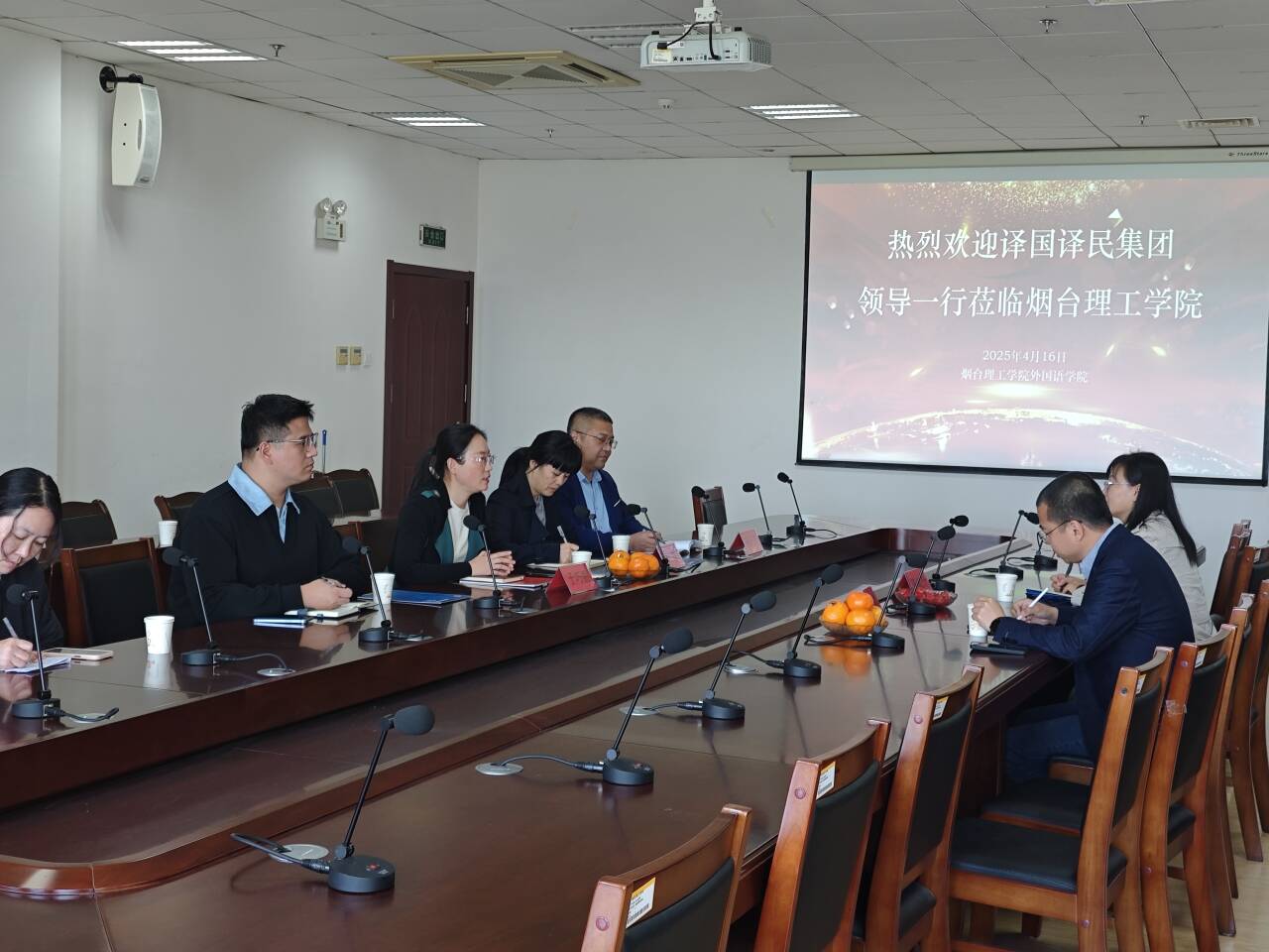 会议开始,于巧丽对来访客人表示热烈欢迎,并详细介绍了学院的专业设置、团队队伍建设以及人才培养模式等情况,并表示对校企合作充满期待,希望在译著出版、人才培养等方面与译国译民集团展开深度合作。随后,译国译民集团总经理林世宾对学院的热情接待表示感谢,介绍了集团的基本情况和在校企合作领域的经验,并阐述了校企合作的具体内容,涵盖团队团队建设、员工翻译实习与就业、专业建设方案等多个方面,突出了校企合作对于人才培养的重要意义。在交流环节中,双方围绕译著出版、团队培训及特色课程课堂建设等议题展开了深入探讨,达成了多项共识。学院方面表示将积极支持校企合作项目的推进,为员工创造更多接触行业前沿的机会;集团方面也表示将为学院提供全方位的支持,共同推动校企合作的深入开展。