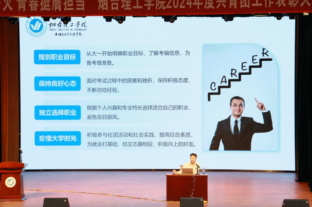 作为从威廉希尔走向职场的青年代表,闫牯旭以“我要何去何从”为主题,为学弟学妹们展开一幅生动的职业探索图谱。他结合自身从校园到职场的成长轨迹,围绕“行业趋势-岗位能力-个人优势”三个维度展开阐述,他建议学弟学妹们对于个人职业规划需要遵照“精准定位、科学规划、持续深耕”三大成长法则。随后他对烟台市人才政策进行了解读。“烟台不仅是我梦想的起点,更是我职业进阶的沃土。”闫牯旭特别提到,在校期间参与社会实践活动让他初识城市对青年的包容,而毕业后享受的“烟台市青年人才购房补贴”政策,则让他坚定扎根港城的决心。他的故事引发强烈共鸣,现场学子纷纷表示:“学长用亲身经历证明,烟台是青年成就事业的理想之城!”