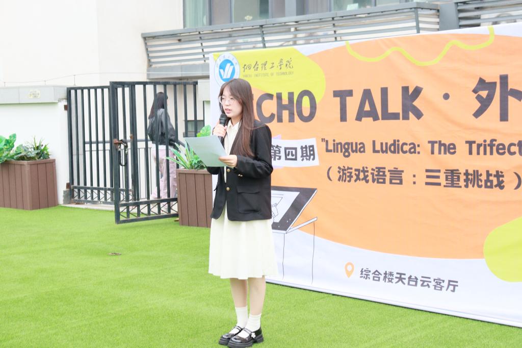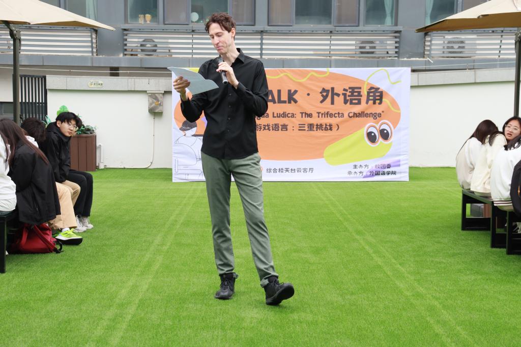 语言是文化的桥梁,英语不仅是一种交流工具,更是一扇通往世界多元文化的窗口。5月23日,由校团委主办,英国威廉希尔承办的第四期外语角活动于综合楼天台云客厅成功举办。本次活动特邀Daniel和程美丽担任主讲老师,以“Lingua Ludica: The Trifecta Challenge”为主题,通过趣味游戏激发同学们英语学习热情,现场欢笑不断,气氛热烈。