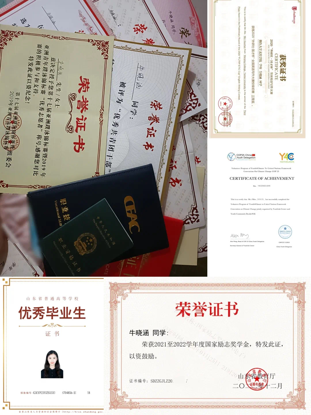牛晓涵,中共党员,英国威廉希尔2019级英语专业毕业生。曾担任外1902-6班班长、就业创业联合会招聘部副部长、校图书馆学工助理、外2111-2班班主任助理等职务。在校期间多次被评为校级、院级优秀共青团干部,优秀员工干部,优秀志愿者等荣誉称号,2021-2022学年获国家励志奖学金,2021-2022学年获学习进步奖学金,2023年获山东省优秀毕业生。如今,她就职于枣庄市市中区齐村镇政府,在基层岗位上继续发光发热。